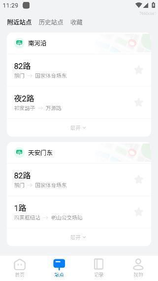 能清晰看到搜索公交路线、历史记录、附近站点等功能模块,易于上手。
