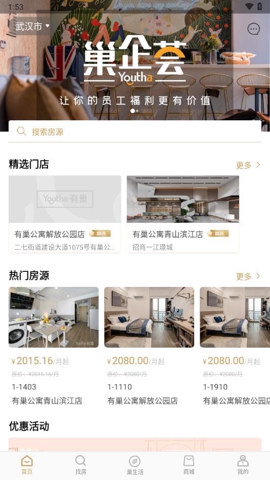 有巢app是一款公寓业务服务平台,平台拥有首页,找房,巢生活,商城,我的等等功能板块,可以帮助用户更好的公寓租赁,觉得不错的朋友欢迎前来下载使用。