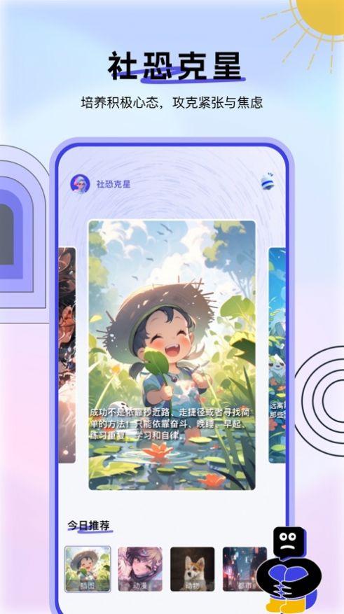 社恐克星软件下载安装是一款可以为大家提供更多帮助的社恐必备助手,通过多种专业的方式来帮助大家直面自己的问题,在正向的激励下打开自己的内心,直面恐惧,突破自己。