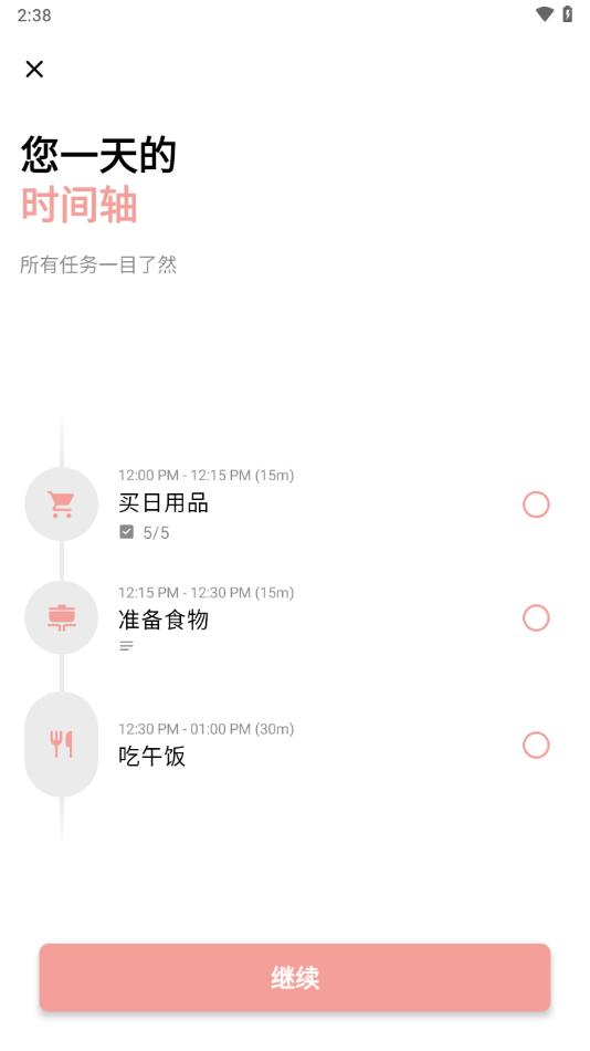 - 在直观的时间轴中管理您的日常任务,更快实现您的目标