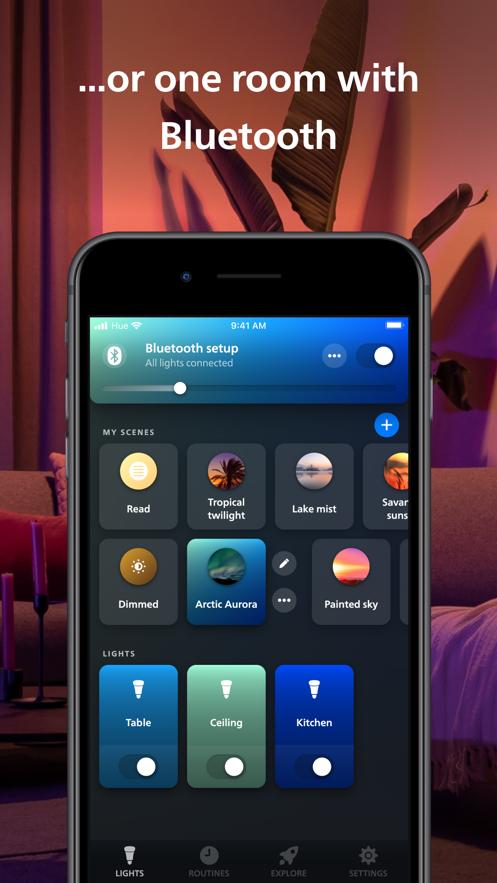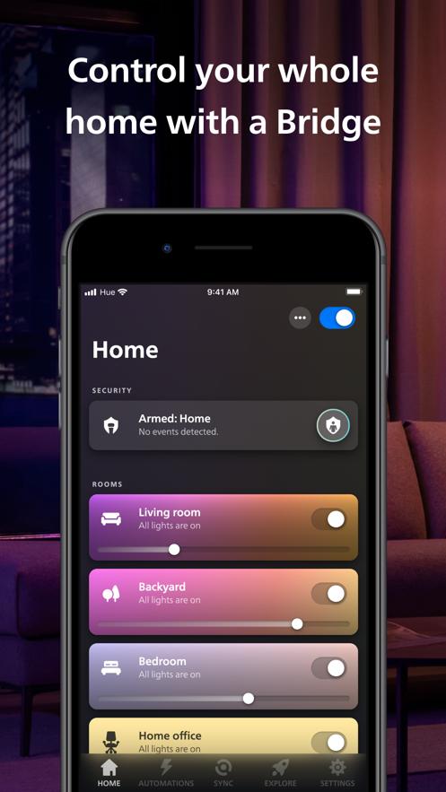 官方 Philips Hue 应用程序可用于全面管理、控制和自定义您的 Philips Hue 智能灯具和配件。
