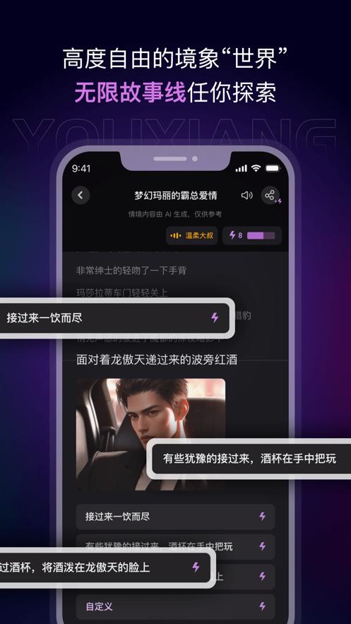 自由之境-玩家可以自由设定角色和剧情,在影视剧、小说的名场面的上,融入自己的观点,内容或者理解,形成新的作品,让更多的玩家因为你的一个片段,而爱上了你的全部。