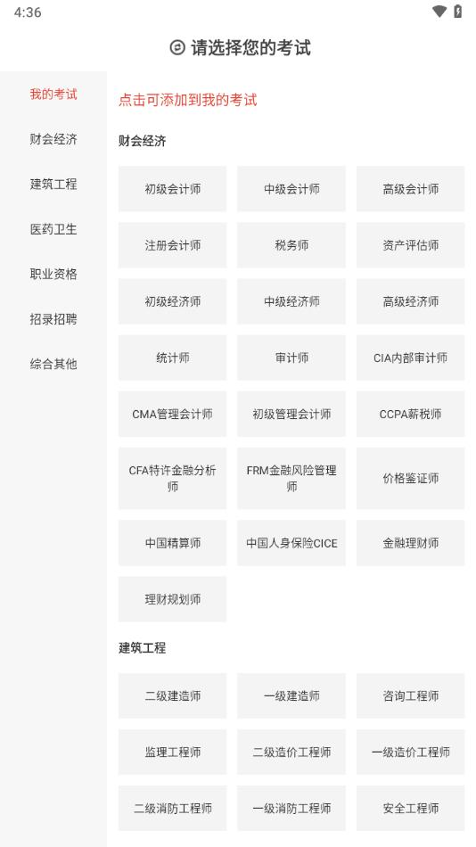 覆盖初级会计师、中级会计师、注册会计师、税务师、经济师、一级建造师、二级建造师、造价工程师、监理工程师、消防工程师、咨询工程师、执业药师、护士资格、初级护师、主管护师、健康管理师、社会工作者、证券从业、基金从业、公务员等考试,是一站式考证学习软件。