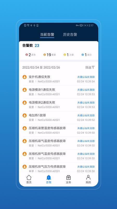 neteco app是一款能源监控管理服务平台,平台拥有首页,告警,业务,我的等等功能板块,可以帮助更好的能源管理,需要的朋友欢迎前来下载使用。