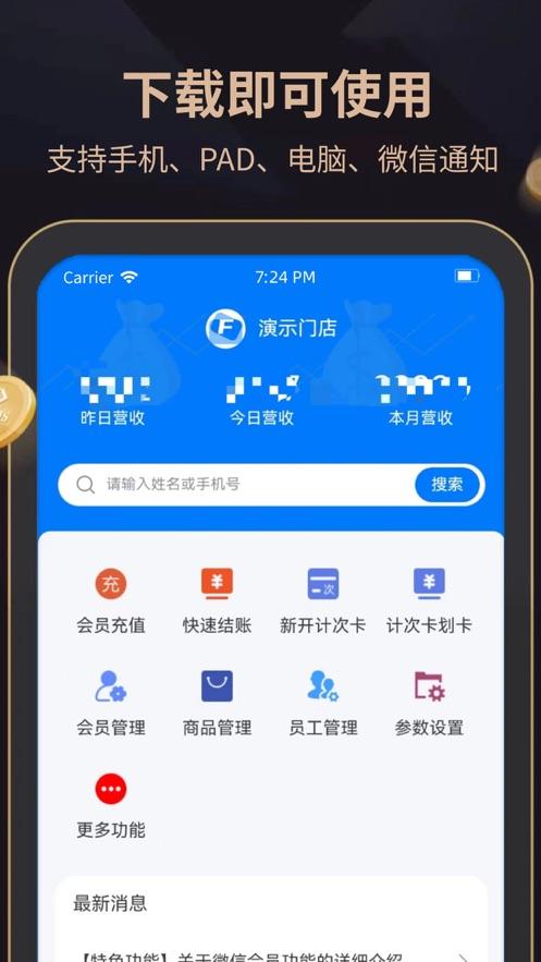 免服务号申请,免卡制作,免设备用手机就能管理生意。