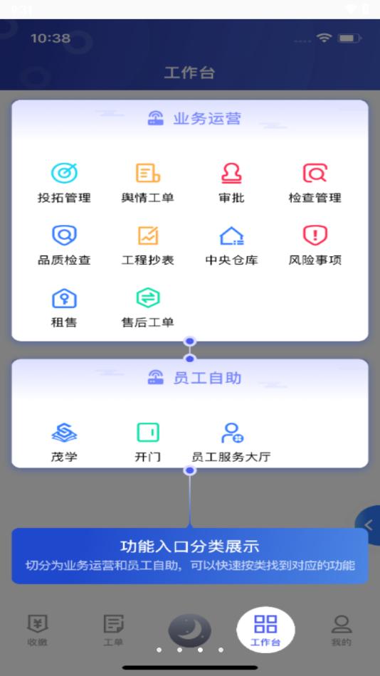 茂管家是主要针对世茂物业员工、合作伙伴等推出的移动版员工自助快捷工作平台,实现报事报修、自助考勤、工单绩效、服务业务等功能。