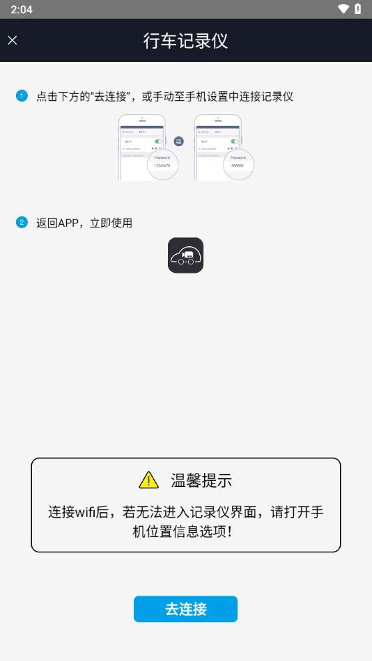 1.支持WIFI无线连接行车记录仪
