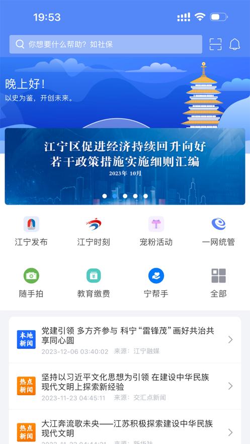 APP以用户个性化体验为中心,江宁区市民能够足不出户、随时随地充分享受政府和社会提供的优质服务和生活便利。