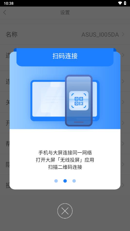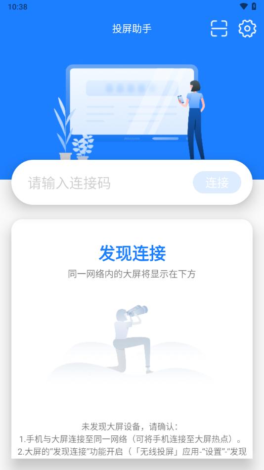 手机与大屏连接同一网络,打开大屏无限投屏应用,扫描二维码连接