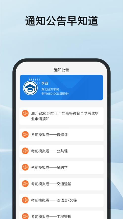 自考e学通app是一款学习备考掌上工具,软件拥有首页,练习,考试,视频,我的等等功能板块,可以帮助用户更好的移动学习备考,觉得不错的朋友欢迎前来下载使用。