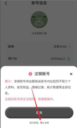 在底部弹窗中,点击我已知晓,确认注销,即可删除数据并注销账号