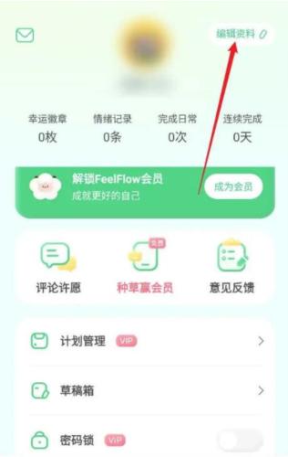 进入FeelFlow APP用户中心,点击编辑资料进入账号信息主页