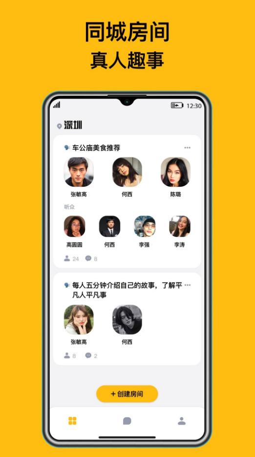 真人语音交互更轻松,每天都有来自世界各地的朋友加入,也可安静离开,轻松无压力