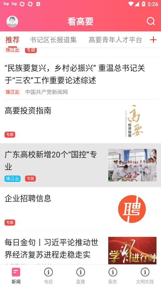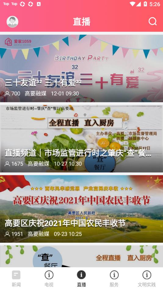 看高要app是专为高要区制作的融媒体移动平台,平台拥有新闻,电视,直播,服务,文明实践等功能板块,可以帮助更好的服务高要。