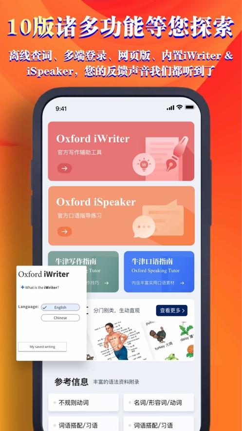 内置在线版本iWriter、iSpeaker软件,还有每日更新的英语知识;