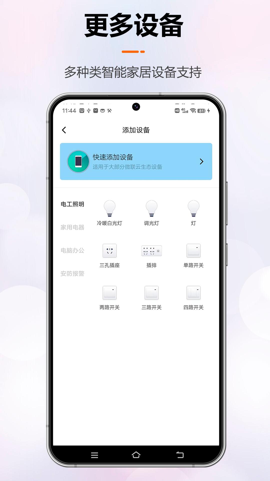 微联云智能app是一款智能家居服务平台,平台可以帮助用户手机和智能家居设备连接,实现设备管理,参数设置,一键分享等等功能服务,可以给予用户更智慧便捷生活体验。