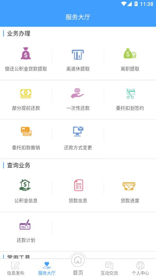 业务查询:公积金信息 贷款信息 贷款进度 还款计划