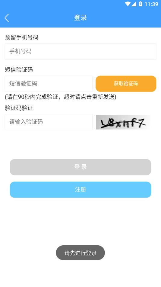 在盘锦公积金app客户端上输入缴存职工姓名、身份证号码、中心预留手机号,获取短信验证码之后进行注册。