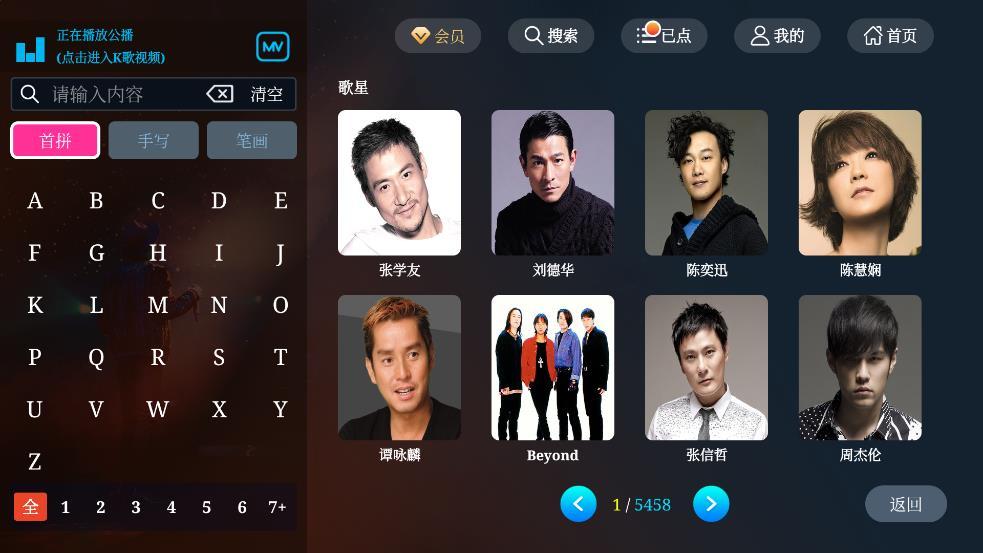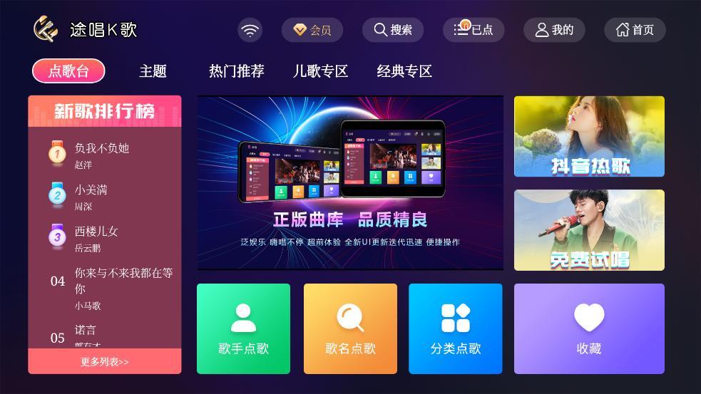 4. 多种检索方式:途唱K歌支持歌星、歌名、拼音、手写、笔划点歌等多种点歌方式;