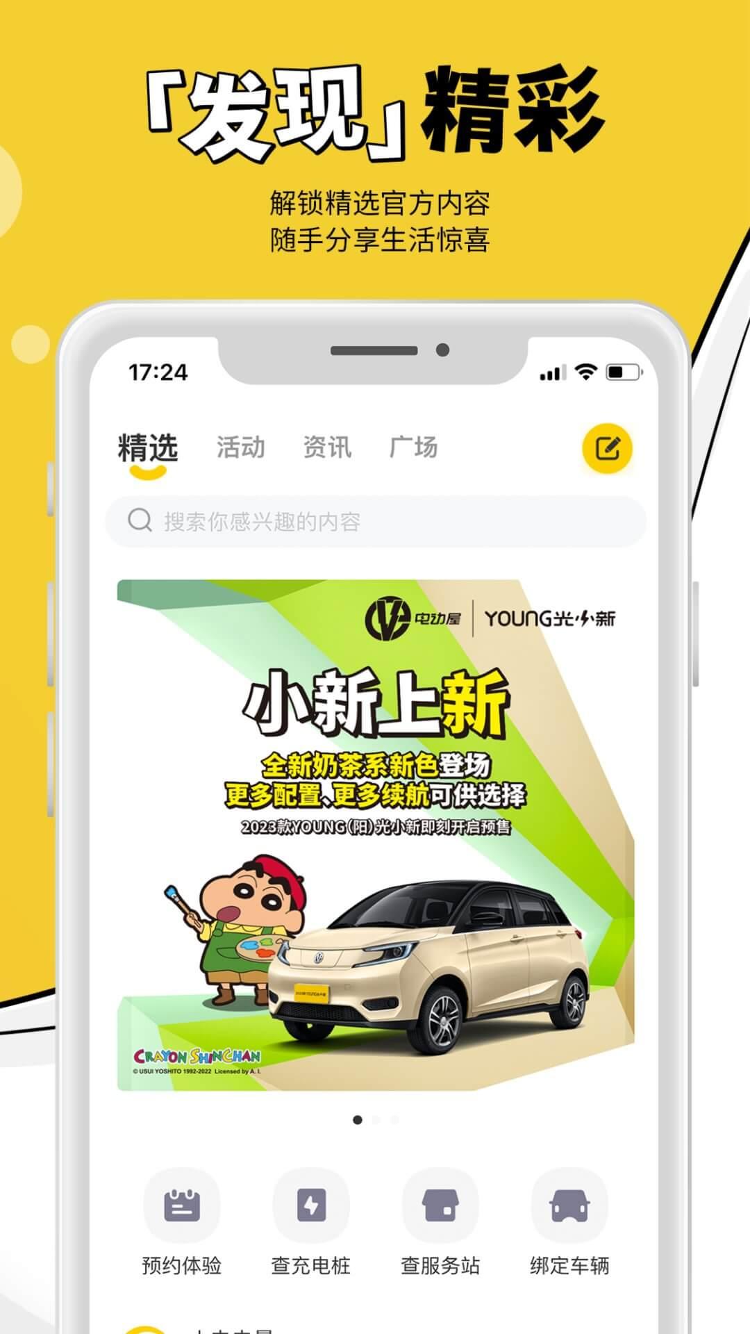电动屋APP!我们致力于为用户提供更优质更全面的用户生命周期全旅程服务。APP包含「发现」、「小新」、「爱车」、「商城」、「我的」五大模块,是专为车主服务的轻松购车、用车、养车、卖车的有车生活阵地!