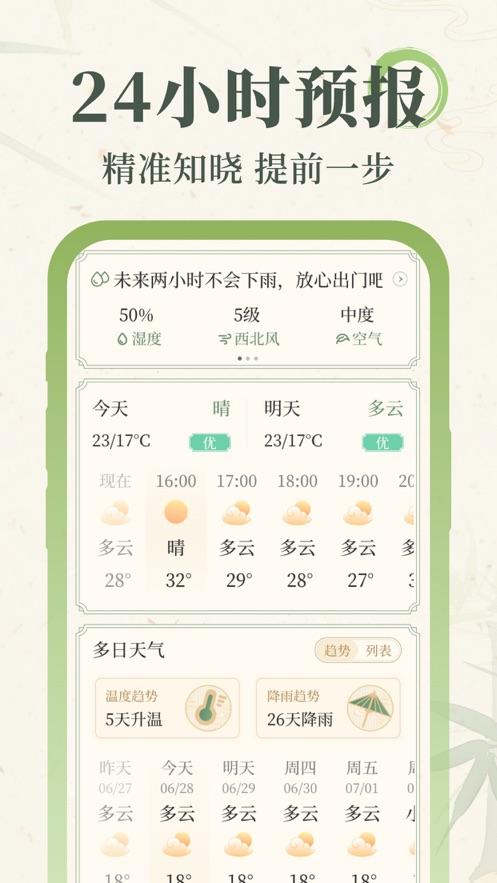 【24小时天气预报】轻松查阅24小时内天气变化,提早知晓温度起伏和下雨情况;