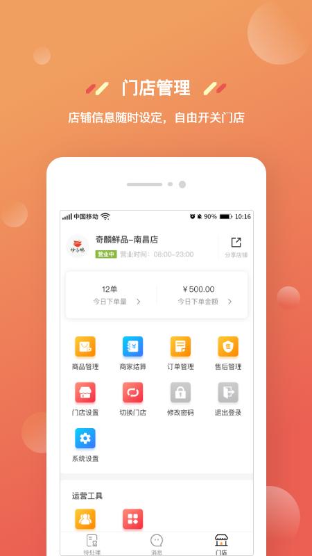 奇麟鲜品商家版可以辅助商家对店铺进行商品管理、订单管理、售后管理、结算管理、运用管理等,提升商家交易的便利性,让管理店铺更轻松。