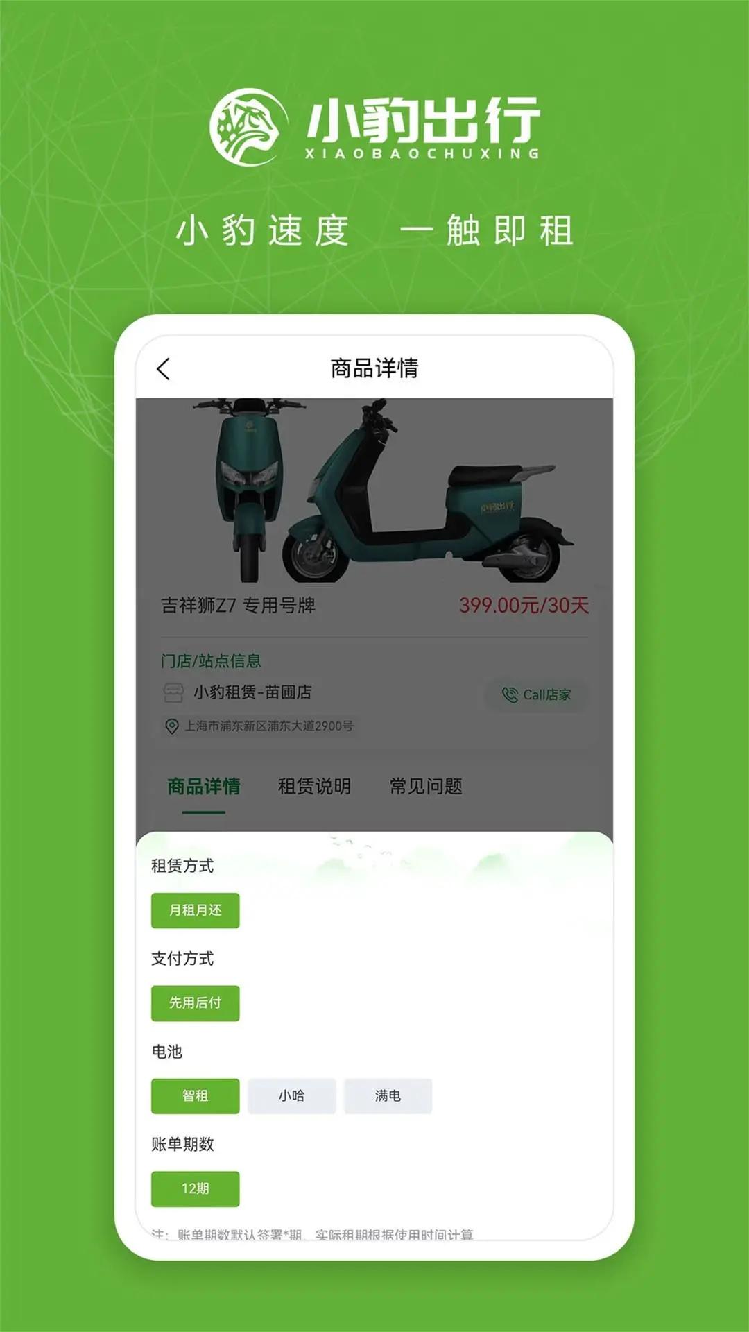 小豹出行app是一款电动车租赁出行助手,软件可以帮助用户线上选车,线下扫码取车,并且支持多种支付方式,还拥有配件维修服务,需要的朋友欢迎前来下载使用。