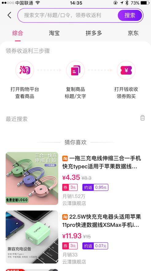 钱收收app是一款每次线上购物都可以轻松省钱返利的电商软件,种类繁多的商品,而且你会喜欢它的也有很多,生活中用到的商品随处可见,你可以在这里购买,挑选的太多了,而且还有大量的优惠券可以拿到,让大家可以很容易的省钱。