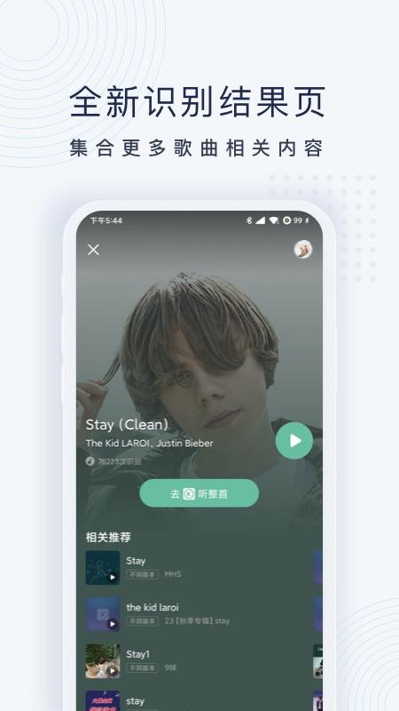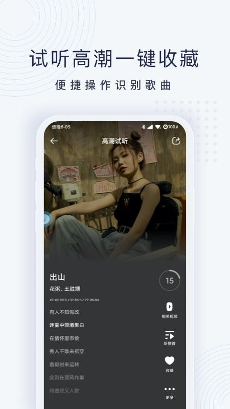 3.启动应用就知道是什么歌,一键收藏至酷狗