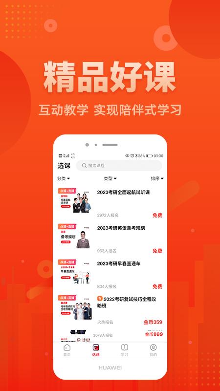 1、海量课程:高清课程随时学,支持离线下载功能,无网也能轻松学习,并配有学习日历,不错过一场直播课程;