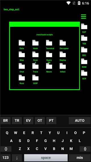 在手机上就能快速操作,直接提供一个虚拟键盘,你可以通过键盘输入任意内容,输出界面将会自行输出各种有趣的英文字符,模拟出黑客敲击代码的感觉,好玩又有趣。