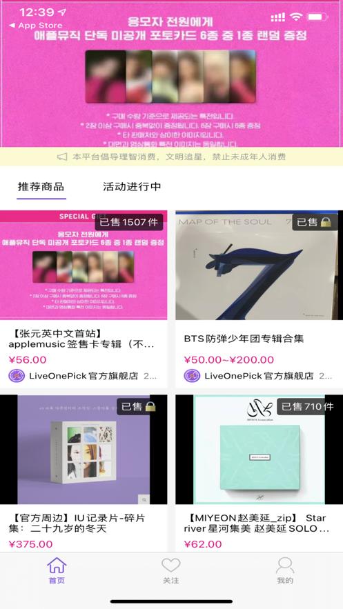 LiveOnePick是专为粉丝服务的偶像明星作品及周边线上售卖平台,