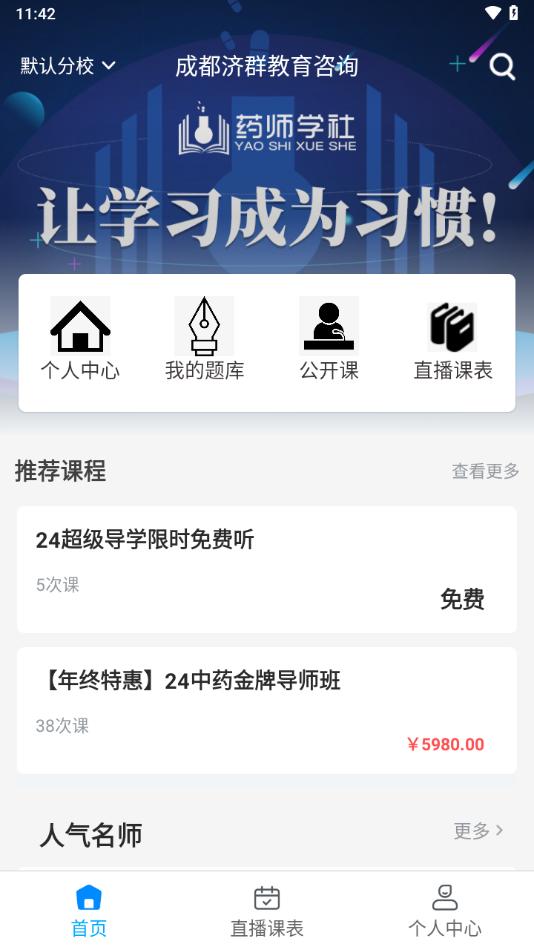 《药师学社APP》是一款专注药学从业人员考试取证,技能提升的移动应用,隶属于成都济群教育咨询有限公司,由张千老师于2016年协同业内名师成立。