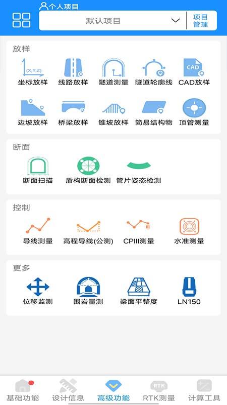 也有智能放样、断面扫描超欠挖、导线测量等高级功能。
