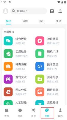 1、打开神奇应用进入到【社区】模块。