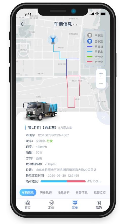 五征智慧环卫具有车辆、人员、设施管理;车辆油耗监测、分析;车辆作业效率分析等功能,