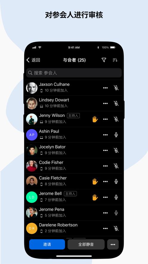 - 可控制对话,将某个人或所有与会者静音,从而使讨论更具成效。