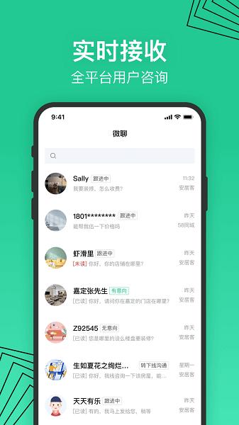 - 【高效沟通】最新微聊,及时触达,可通过文字、图片、音视频等方式与用户沟通需求,提供服务