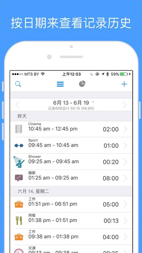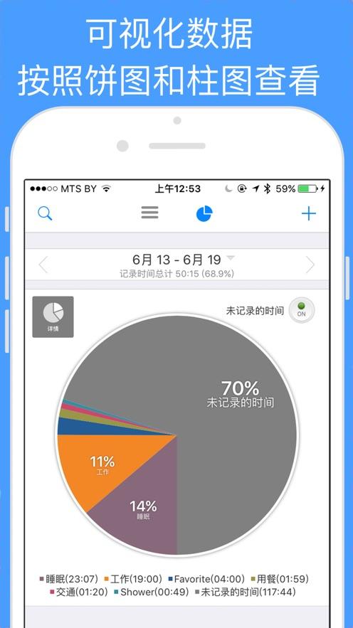 每天在这个应用程序花上几分钟的时间, 您就能得到每日、每周和每月的统计结果, 并用表格和图形表示出来。使用这些数据您能够方便地对自己的时间利用情况进行监控和管理。