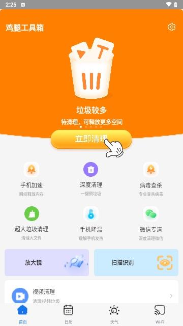 鸡腿工具箱软件是一款专为手机研发的工具箱,这里可以一站式知道天气、日历、手机清理等,还可以看到wifi信息,同时还能看到今日的天气适合干什么,还会提醒是否适合钓鱼等,是一款实用且操作简单的手机工具软件。
