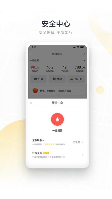 如祺司机端让司机能够更好的接单病管理订单,所在的位置将会被准确的查询以及定位。值得注意的是,app还为用户的安全进行了升级。如果用户在出行的过程中有问题,那么app会对用户实时的保驾护航。报警界面中的一键报警将会为你提供安全服务,让你放心出行。