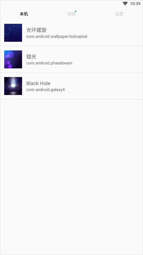 将显示动态壁纸预览图(如果存在)或应用图标,以及应用程序名称和包名,项目被点击时,可以进入动态壁纸的预览,如果应用程序存在入口点,长按项目将启动该动态壁纸程序。