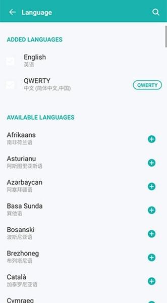 3、之后我们在下方查找自己想要添加的语言并点击后方【+】即可