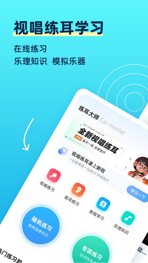 练耳大师app下载安卓是一款视唱练耳学习平台,平台拥有音乐乐理知识,视唱练耳在线练习,多功能工具箱等等功能内容,可以帮助用户更好的视唱练耳。