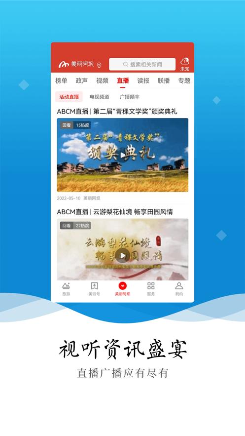 是集阿坝州新闻资讯发布、人文风情推荐和现场直播、视频专题、便民服务、互联互动于一体的图文视全功能主流传播平台。