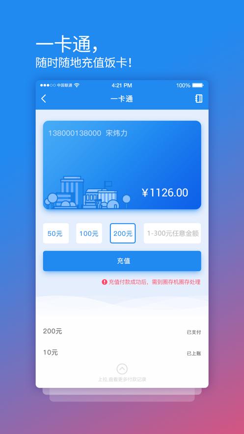 在这里,你可以随时随地充值饭卡,饭卡掉了还可以立即挂失。