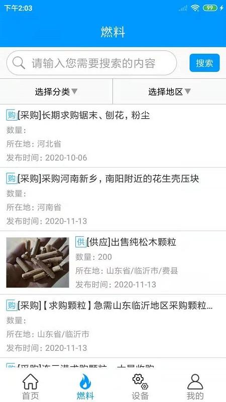 生物质燃料app是一款由九千九河北网络科技有限公司开发的生物质燃料采购供货服务软件,软件内拥有非常多有实力的供应商,用户可以通过本软件线上采购材料,还能从中购买到一些好的设备。
