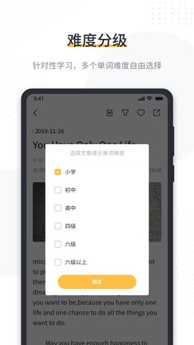 文章的重点单词(初高中,四六级等词库)重点提示,可以按照难度选择所需提示单词,帮助你有重点的学习单词。