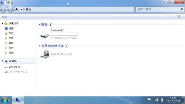 3、然后进入到电脑桌面,和正常的win7系统没有什么区别