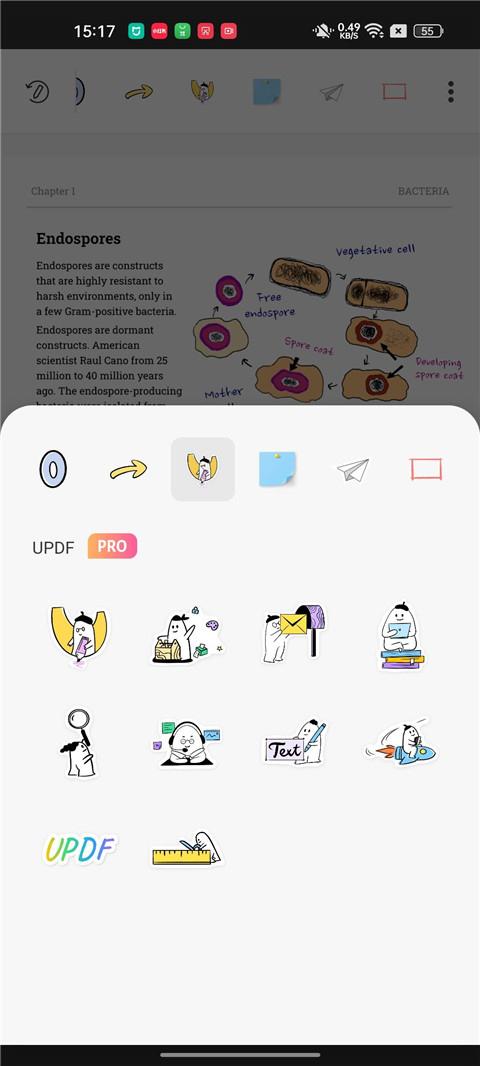 1、要在 PDF 文档中添加贴纸,请点击 UPDF 顶部栏上的“贴纸”图标。